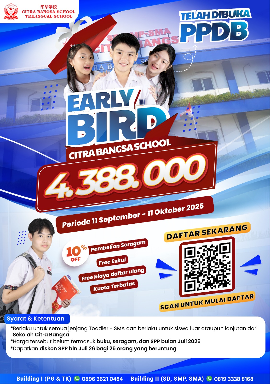 Citra Bangsa is an legal institution proven on Oct 1 st 2007, Kindergarten and elemetary School has been trusted to obtain operational establisment permit for kindergarten and elementary school for government (NO. 421.1/2757-TU dan NO.421.2/2756-TU) as well as the number of school statistic.